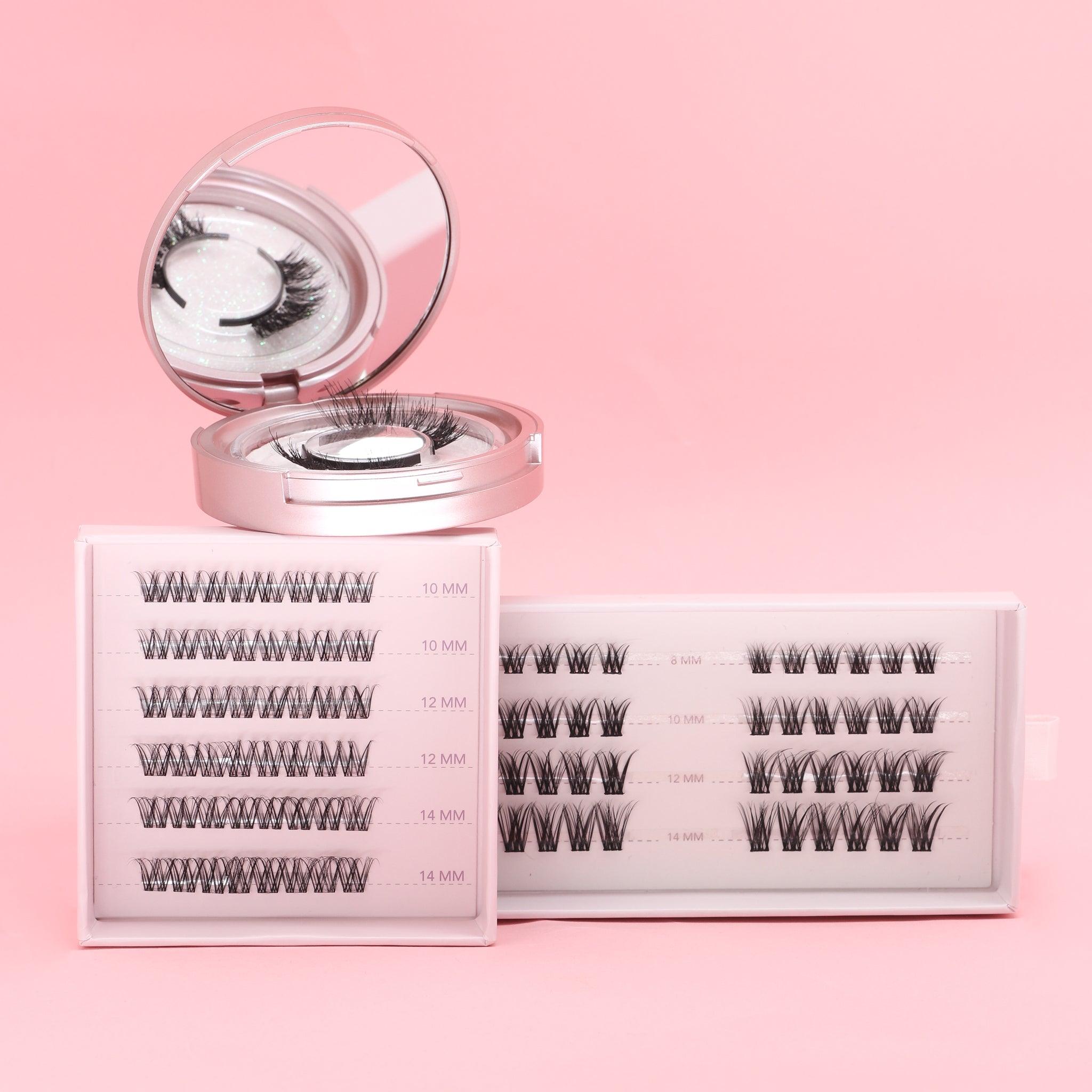Each box includes 48 handcrafted lash clusters in four lengths: 8mm, 10mm, 12mm, and 14mm.